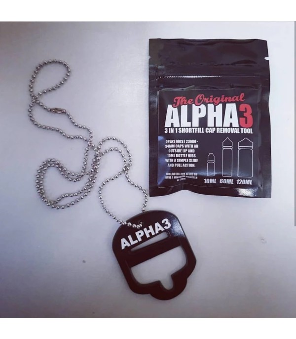 Alpha 3’ü 1 Arada Shortfill Şişe Kapağı Açma Aparatı; shortfill şişe kapaklarını ve 10 ml’den 120 ml’ye kadar olan nib’leri pratik, hızlı ve güvenli bir şekilde çıkarmanızı sağlayan tam metal yapılı bir aparattır. Hafif ve taşınabilir tasarımı, beraberinde gelen boyun zinciriyle her zaman yanınızda kolayca bulundurmanıza olanak tanır. Makas veya tornavida gibi ek araçlara gerek kalmadan, tek bir hareketle kapağı zarar vermeden açar.