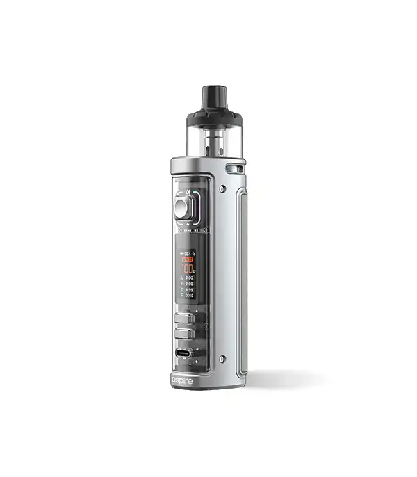 Aspire Zelos M80 Pod Mod gümüş ve siyah renkli, elektronik sigara seti.