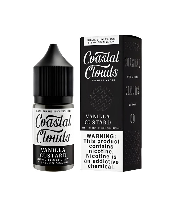Coastal Clouds Vanilla Custard Salt Likit, zengin vanilya ve krema aromalarının uyumuyla tatlı, yumuşak ve dolgun bir lezzet deneyimi sunan elektronik sigara likitidir. 50VG / 50PG oranı sayesinde yumuşak içim ve yoğun aroma dengesi sağlar. 30 mL şişede, 35 mg ve 50 mg nikotin seçenekleriyle sunulur.