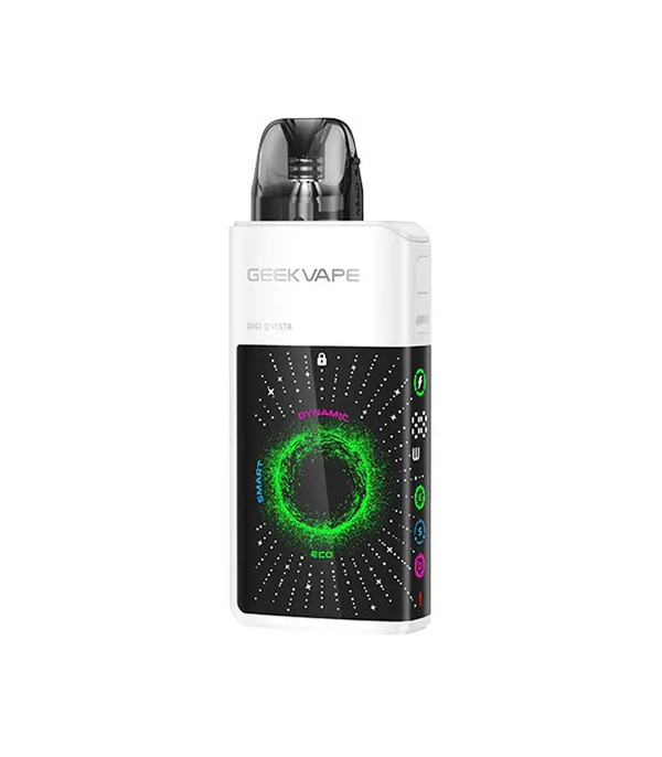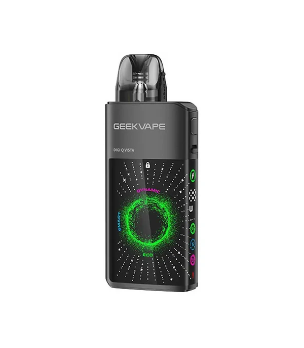 GeekVape Digi Q Vista, çarpıcı 3D ekran tasarımı, güçlü bataryası ve çok yönlü ayar seçenekleri ile hem yeni başlayanlara hem de deneyim isteyen vaper’lara hitap eden modern bir pod sistemidir. 1600mAh dahili batarya ve USB-C hızlı şarj desteği ile tüm gün süren kullanımlar için uygundur. ECO, SMART ve DYNAMIC modları sayesinde cihaz, pod’un direncine ve kullanıcı tercihine göre performansını otomatik olarak dengeler.