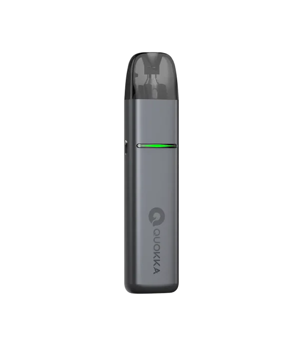 Hayati Quokka Elite Pod Mod gümüş renkli, yeşil ışıklı, kompakt elektronik sigara.