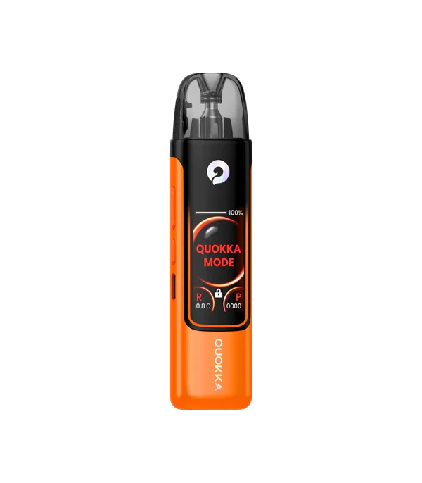 Hayati Quokka Pro Pod Mod turuncu, siyah renkli, dijital ekranlı elektronik sigara.