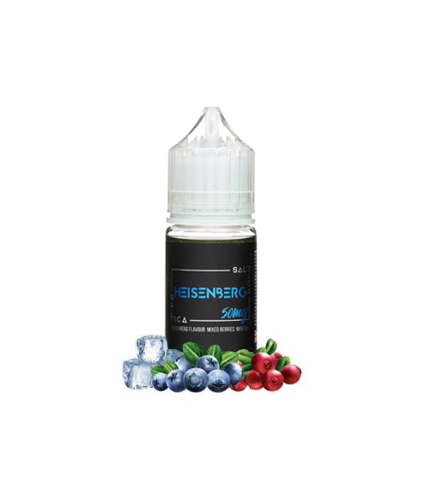 Saltica Heisenberg Salt Likit: Gizemli meyve (Yaban Mersini, Turna Yemişi) ve taze nane aromalı, 30ml salt nikotin içeren likit. %50 PG/%50 VG oranıyla ferahlatıcı ve doyurucu bir elektronik sigara deneyimi sunar. Hemen keşfedin!