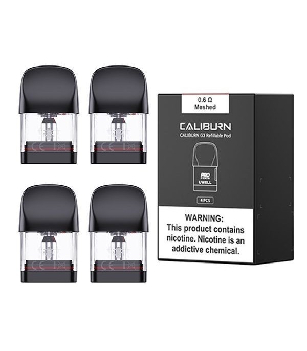 UWELL Caliburn G3 Yedek Podlar, seçtiğiniz 0,6 Ohm pod bobini veya 0,9 Ohm pod bobini ile birlikte gelir ve dört (4) adet yeniden doldurulabilir Pod Kartuşundan oluşan bir paket halinde gelir.