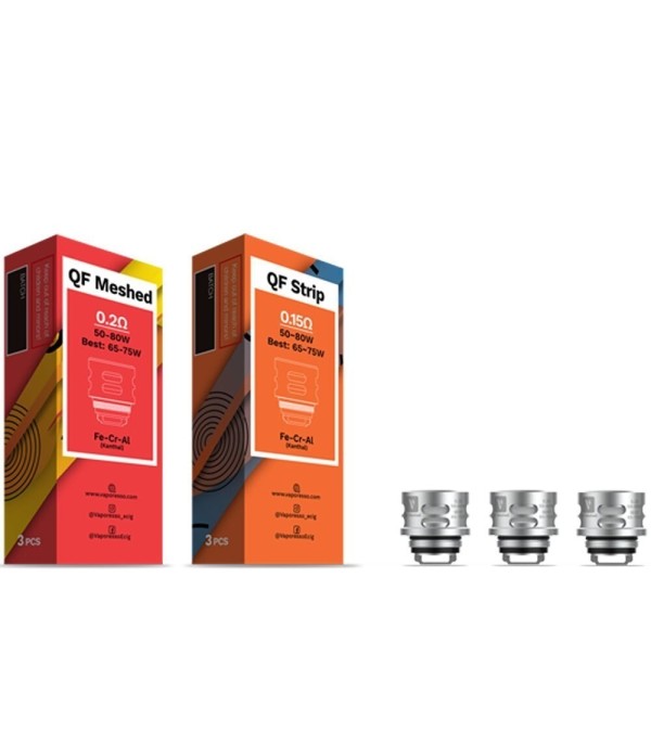 Vaporesso Luxe QF Coil'leri 0.2 Ohm (QF örgü), 0.15 Ohm (QF Strip) ve 0.5 Ohm (QF CCELL) seçenekleriyle 3’lü paketlerinde sizlerin kullanıma sunulmuştur.