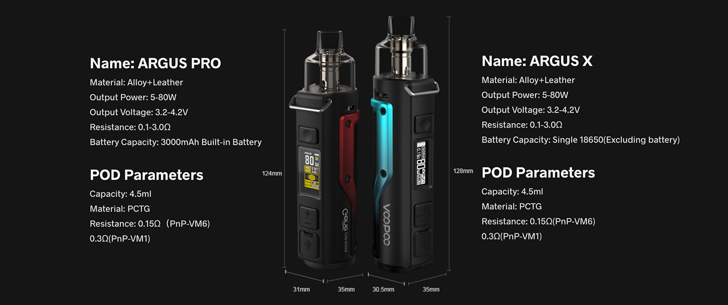 Voopoo Argus 40W Pod Modçinko alaşımından yapılmış sağlam bir gövdeye sahip olup, deri detaylarıyla zarif ve dayanıklı bir tasarım sunar.
